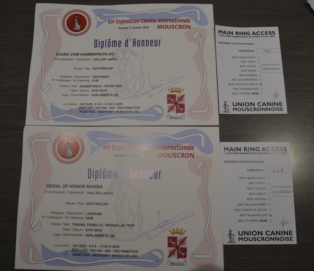 Encore un titre pour Djuke qui remporte la classe jeune mâle et le meilleur jeune à l’Exposition Internationale de Mouscron en Belgique. Djuke devient donc : JEUNE CHAMPION DE BELGIQUE!