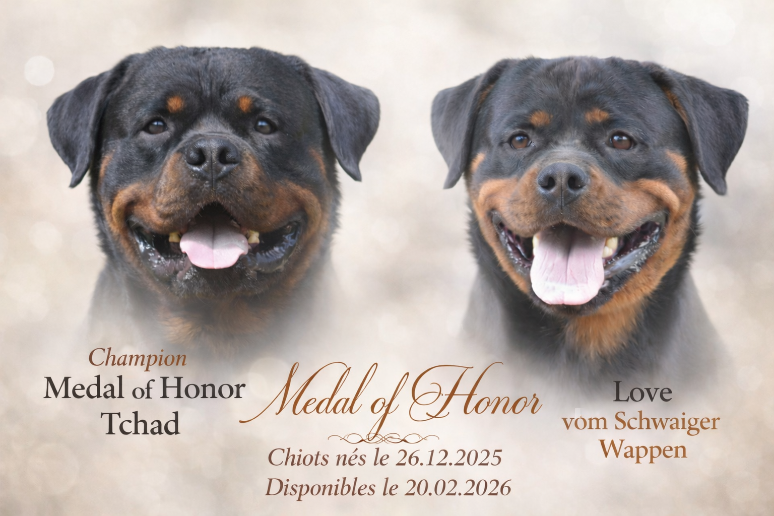 N’hésitez pas à nous contacter au 06.89.60.00.54 ou par mail rottweiler.medalofhonor@gmail.com.